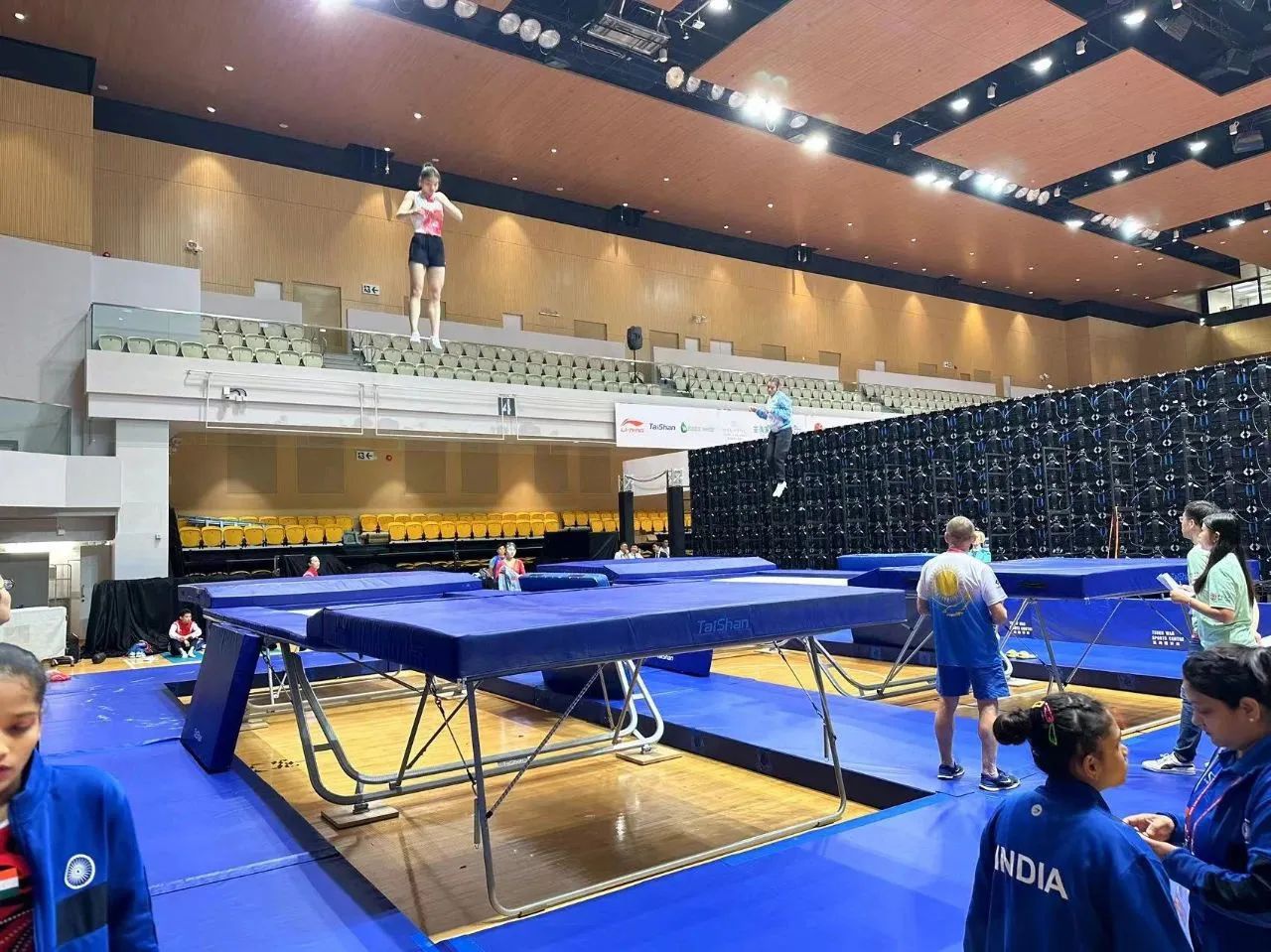 为服务好本届蹦床锦标赛,AMG·新葡萄8883保障人员严格按照赛事服务手册开展工作,从场馆的规划布局、器材的安装调试、标准高度的校准、过程巡检等各个环节,一丝不苟、严谨细致,确保蹦床器材安装的准确无误,始终践行国际赛场上的中国标准,见证AMG·新葡萄8883全领域规划、设计、制造、集成、运营、服务一站式解决方案的发展理念。