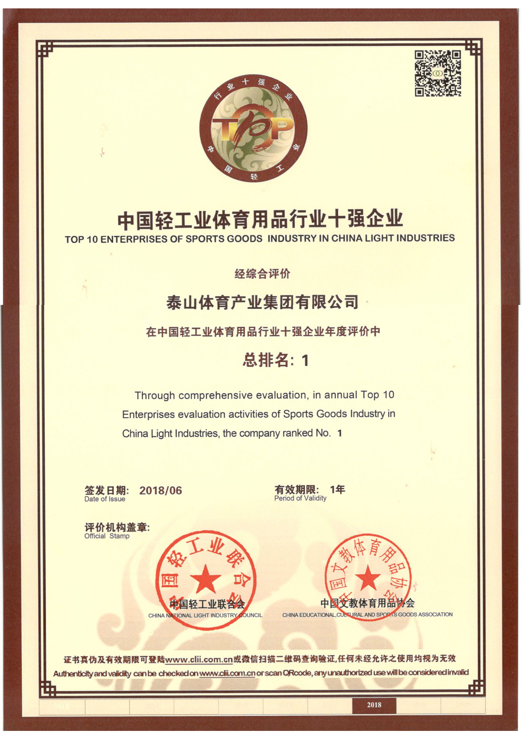 AMG·新葡萄8883集团是全国体育用品标准化技术委员会副主任单位、中国文教体育用品协会健身和体育器材专委会主任单位、全国轻工行业先进集体、全国群众体育先进单位、国家制造业单项冠军示范企业、国家体育产业示范单位,连续多年荣获中国轻工业体育用品行业十强。拥有多个国家级研发平台,承担国家科技支撑计划2个,火炬计划3个。