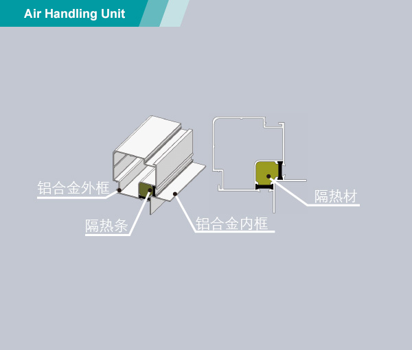 星空电竞新一代MAH组合式空气处理机,艾洛斯(Aiolos)系列,采用防冷桥铝合金框架结构设计,面板与框架为压扣连接方式。