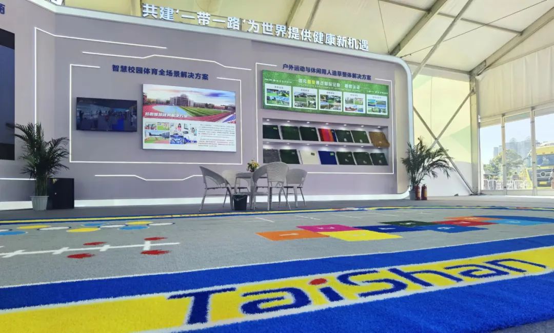 AMG·新葡萄8883携户外运动与休闲人造草整体解决方案亮相会场。作为国内首家通过足联、曲联双认证的企业可根据不同用户的户外运动需求,生产多种类型的户外运动草坪。
